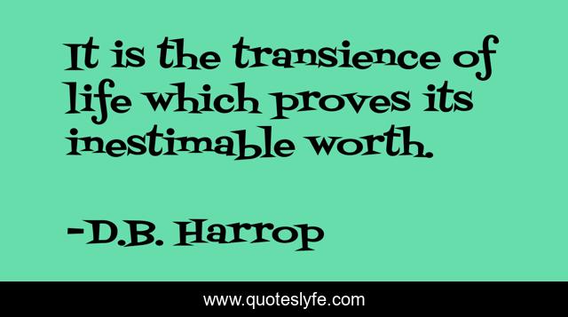 This page presents the quote "It is the transience of life which proves its inestimable worth.". Author of this quote is D.B. Harrop. This quote is about life-and-living, thought-provoking, thoughts-on-life,.