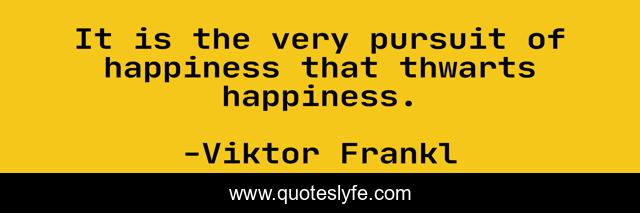 This page presents the quote "It is the very pursuit of happiness that thwarts happiness.". Author of this quote is Viktor Frankl. .