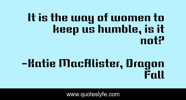 This page presents the quote "It is the way of women to keep us humble, is it not?". Author of this quote is Katie MacAlister, Dragon Fall. This quote is about paranormal-romance, dragons,.