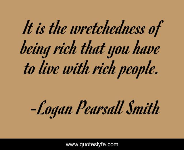 This page presents the quote "It is the wretchedness of being rich that you have to live with rich people.". Author of this quote is Logan Pearsall Smith. .