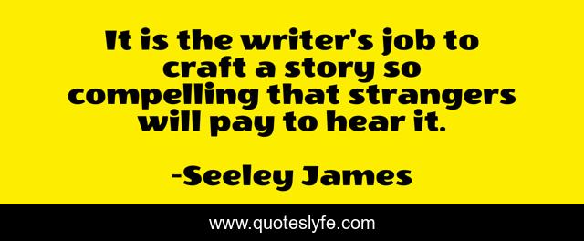 This page presents the quote "It is the writer's job to craft a story so compelling that strangers will pay to hear it.". Author of this quote is Seeley James. This quote is about authors, job, writers, writing,.