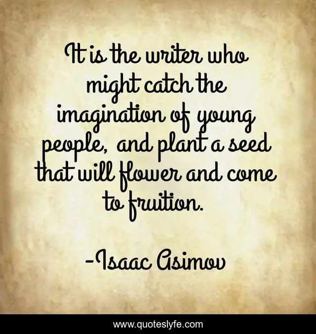 This page presents the quote "It is the writer who might catch the imagination of young people, and plant a seed that will flower and come to fruition.". Author of this quote is Isaac Asimov. This quote is about writer, books, inspiration,.