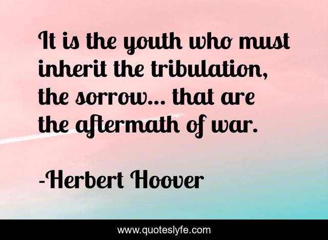 This page presents the quote "It is the youth who must inherit the tribulation, the sorrow... that are the aftermath of war.". Author of this quote is Herbert Hoover. This quote is about youth, sorrow,.