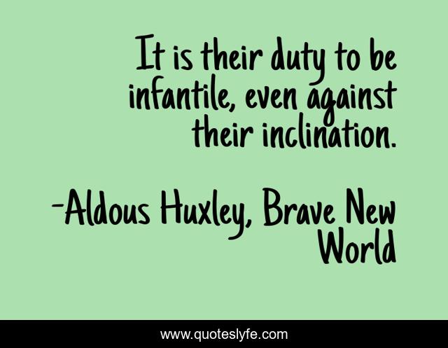 "Aldous Huxley, Brave New World Quotes." Quoteslyfe.com, 2025. Sat. 06 Dec. 2025. <https://www.quoteslyfe.com/quote/It-is-their-duty-to-be-infantile-239701>.