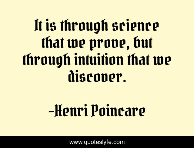 This page presents the quote "It is through science that we prove, but through intuition that we discover.". Author of this quote is Henri Poincare. This quote is about intuition, through, prove,.