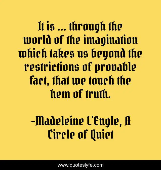 "Madeleine L'Engle, A Circle of Quiet Quotes." Quoteslyfe.com, 2025. Fri. 05 Dec. 2025. <https://www.quoteslyfe.com/quote/It-is-through-the-world-of-the-125799>.