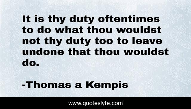 This page presents the quote "It is thy duty oftentimes to do what thou wouldst not thy duty too to leave undone that thou wouldst do.". Author of this quote is Thomas a Kempis. .