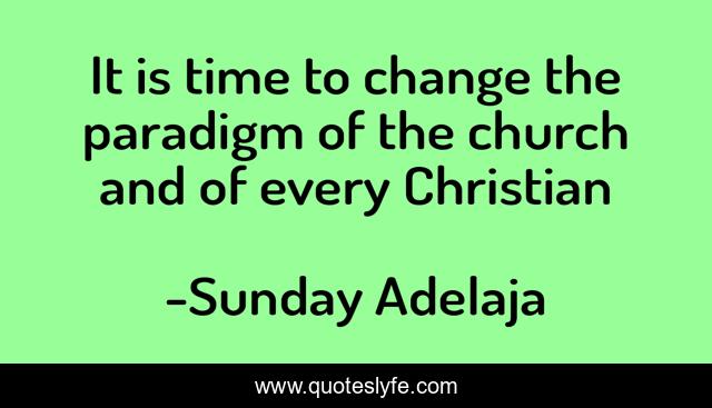 This page presents the quote "It is time to change the paradigm of the church and of every Christian". Author of this quote is Sunday Adelaja. This quote is about church, paradigm, christian, change, time,.