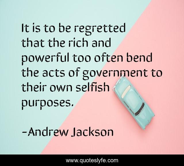This page presents the quote "It is to be regretted that the rich and powerful too often bend the acts of government to their own selfish purposes.". Author of this quote is Andrew Jackson. This quote is about selfish, powerful, rich,.