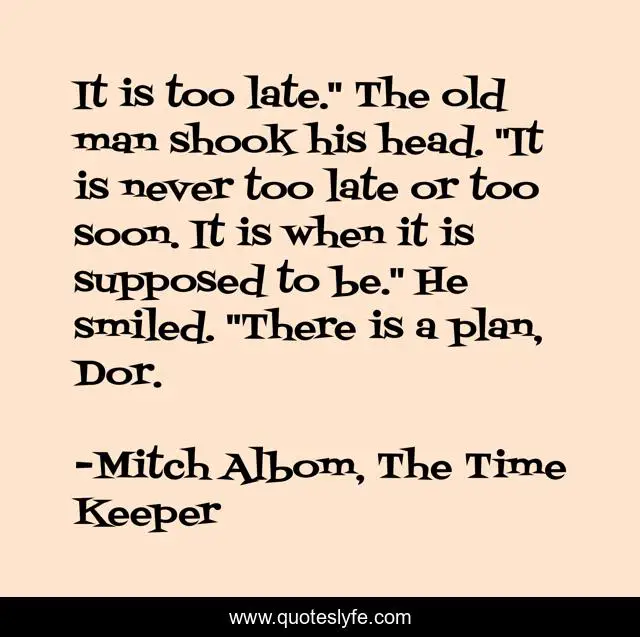 "Mitch Albom, The Time Keeper Quotes." Quoteslyfe.com, 2025. Fri. 05 Dec. 2025. <https://www.quoteslyfe.com/quote/It-is-too-late-The-old-man-38518>.