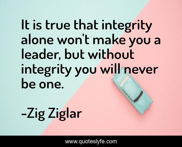 This page presents the quote "It is true that integrity alone won't make you a leader, but without integrity you will never be one.". Author of this quote is Zig Ziglar. This quote is about integrity, leader,.