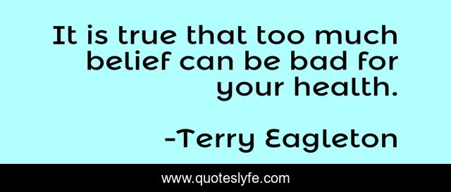 This page presents the quote "It is true that too much belief can be bad for your health.". Author of this quote is Terry Eagleton. This quote is about bad, true, belief,.