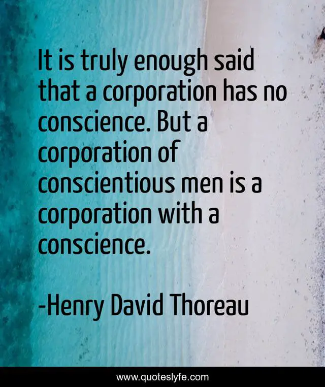 This page presents the quote "It is truly enough said that a corporation has no conscience. But a corporation of conscientious men is a corporation with a conscience.". Author of this quote is Henry David Thoreau. .