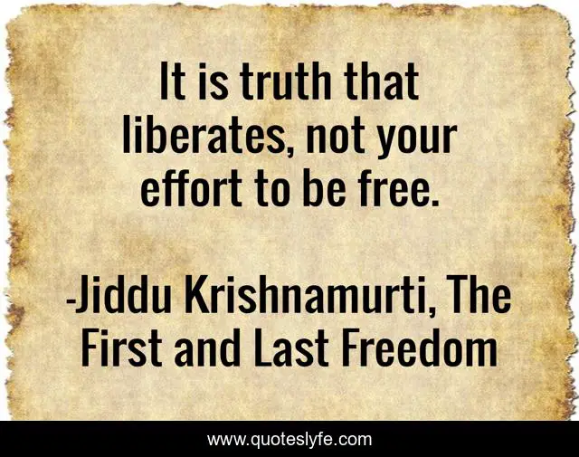 "Jiddu Krishnamurti, The First and Last Freedom Quotes." Quoteslyfe.com, 2025. Sat. 06 Dec. 2025. <https://www.quoteslyfe.com/quote/It-is-truth-that-liberates-not-your-4191>.