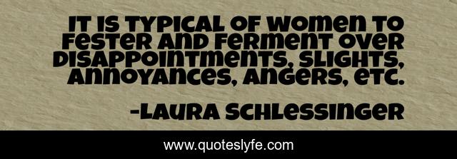 "Laura Schlessinger Quotes." Quoteslyfe.com, 2025. Fri. 05 Dec. 2025. <https://www.quoteslyfe.com/quote/It-is-typical-of-women-to-fester-326916>.
