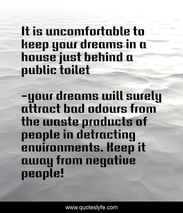 "your dreams will surely attract bad odours from the waste products of people in detracting environments. Keep it away from negative people! Quotes." Quoteslyfe.com, 2025. Fri. 05 Dec. 2025. <https://www.quoteslyfe.com/quote/It-is-uncomfortable-to-keep-your-dreams-129826>.