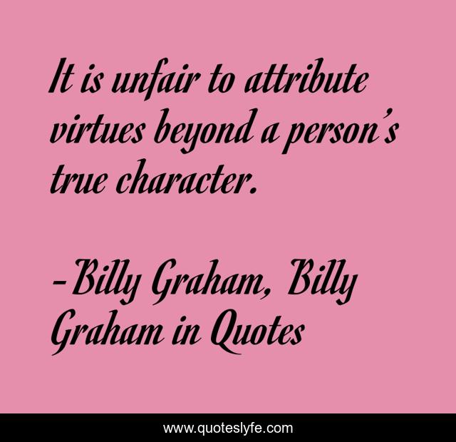 This page presents the quote "It is unfair to attribute virtues beyond a person’s true character.". Author of this quote is Billy Graham, Billy Graham in Quotes. This quote is about character, billy-graham,.
