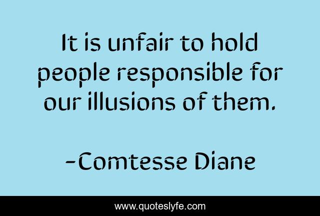 This page presents the quote "It is unfair to hold people responsible for our illusions of them.". Author of this quote is Comtesse Diane. This quote is about helping, people,.