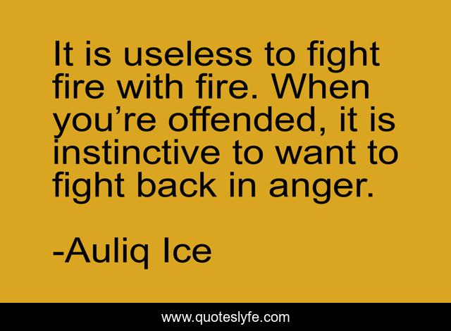 This page presents the quote "It is useless to fight fire with fire. When you’re offended, it is instinctive to want to fight back in anger.". Author of this quote is Auliq Ice. This quote is about problem-solving, forgiveness, anger-management,.