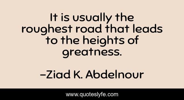 This page presents the quote "It is usually the roughest road that leads to the heights of greatness.". Author of this quote is Ziad K. Abdelnour. This quote is about road, greatness,.