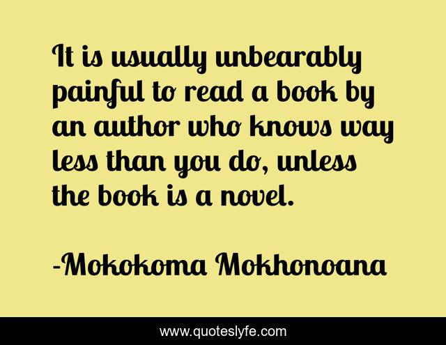"Mokokoma Mokhonoana Quotes." Quoteslyfe.com, 2025. Sun. 07 Dec. 2025. <https://www.quoteslyfe.com/quote/It-is-usually-unbearably-painful-to-read-31530>.