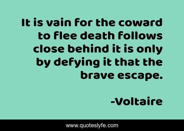 This page presents the quote "It is vain for the coward to flee death follows close behind it is only by defying it that the brave escape.". Author of this quote is Voltaire. This quote is about coward, brave, escape,.