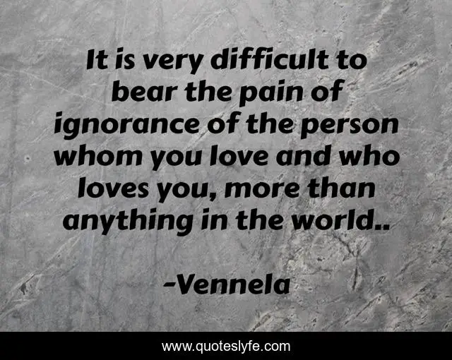 This page presents the quote "It is very difficult to bear the pain of ignorance of the person whom you love and who loves you, more than anything in the world..". Author of this quote is Vennela. .