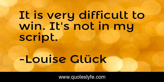 This page presents the quote "It is very difficult to win. It's not in my script.". Author of this quote is Louise Glück. This quote is about poets, writers,.