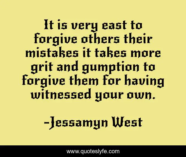 This page presents the quote "It is very east to forgive others their mistakes it takes more grit and gumption to forgive them for having witnessed your own.". Author of this quote is Jessamyn West. This quote is about mistakes, grit, forgive,.