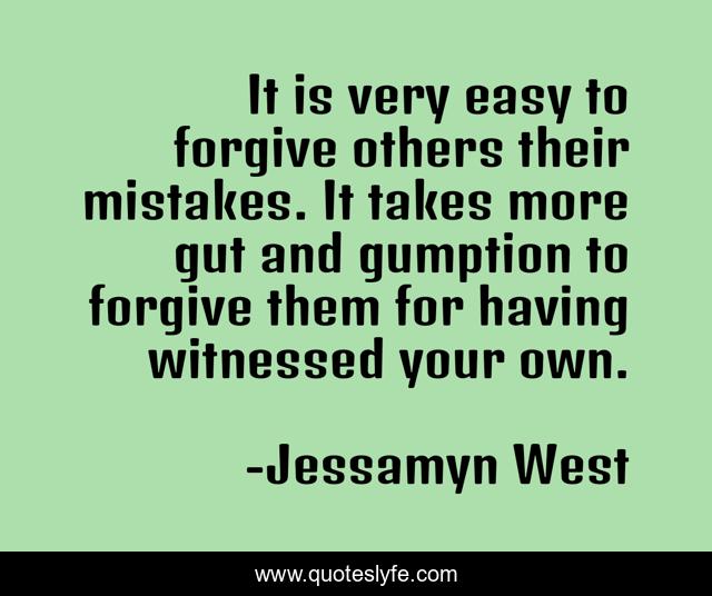 This page presents the quote "It is very easy to forgive others their mistakes. It takes more gut and gumption to forgive them for having witnessed your own.". Author of this quote is Jessamyn West. This quote is about mistakes, blunders,.
