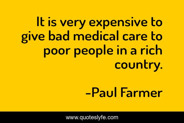 This page presents the quote "It is very expensive to give bad medical care to poor people in a rich country.". Author of this quote is Paul Farmer. This quote is about medicine, science, poverty, rights,.