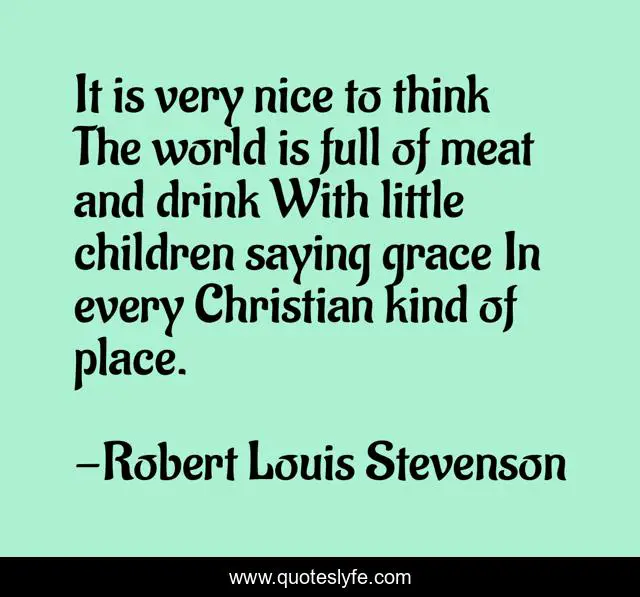 This page presents the quote "It is very nice to think The world is full of meat and drink With little children saying grace In every Christian kind of place.". Author of this quote is Robert Louis Stevenson. .