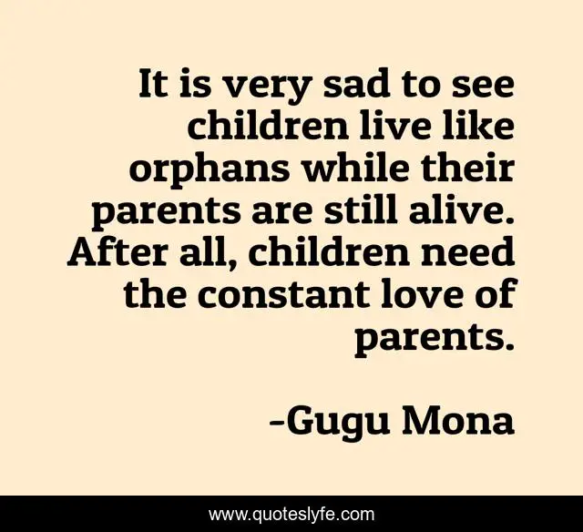 This page presents the quote "It is very sad to see children live like orphans while their parents are still alive. After all, children need the constant love of parents.". Author of this quote is Gugu Mona. This quote is about love, orphans, alive, sad, parents, children, affection,.