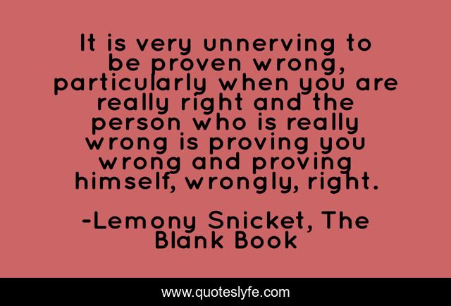 This page presents the quote "It is very unnerving to be proven wrong, particularly when you are really right and the person who is really wrong is proving you wrong and proving himself, wrongly, right.". Author of this quote is Lemony Snicket, The Blank Book. .