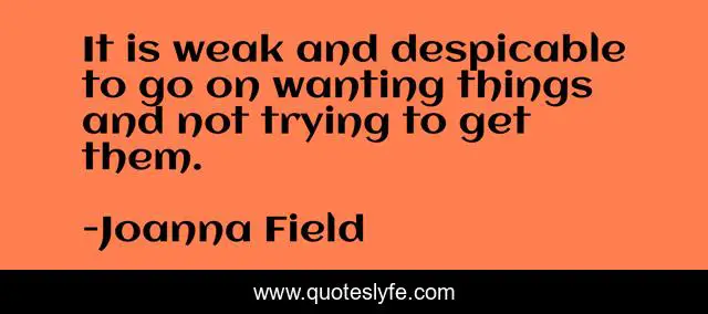 This page presents the quote "It is weak and despicable to go on wanting things and not trying to get them.". Author of this quote is Joanna Field. .