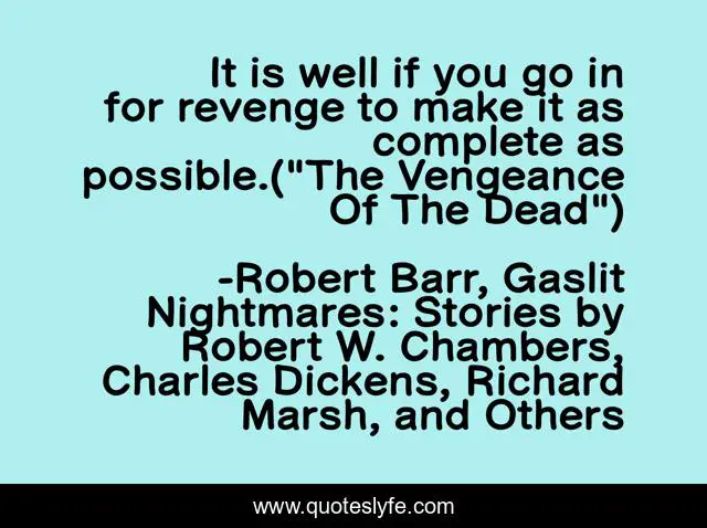 This page presents the quote "It is well if you go in for revenge to make it as complete as possible.("The Vengeance Of The Dead")". Author of this quote is Robert Barr, Gaslit Nightmares: Stories by Robert W. Chambers, Charles Dickens, Richard Marsh, and Others. .