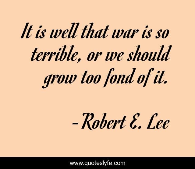 This page presents the quote "It is well that war is so terrible, or we should grow too fond of it.". Author of this quote is Robert E. Lee. This quote is about war, warfare,.