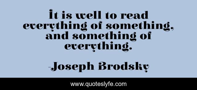 This page presents the quote "It is well to read everything of something, and something of everything.". Author of this quote is Joseph Brodsky. This quote is about everything, well, something,.