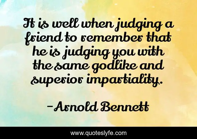 This page presents the quote "It is well when judging a friend to remember that he is judging you with the same godlike and superior impartiality.". Author of this quote is Arnold Bennett. .