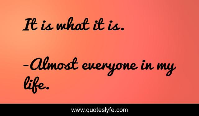 "Almost everyone in my life. Quotes." Quoteslyfe.com, 2025. Sat. 06 Dec. 2025. <https://www.quoteslyfe.com/quote/It-is-what-it-is-94227>.