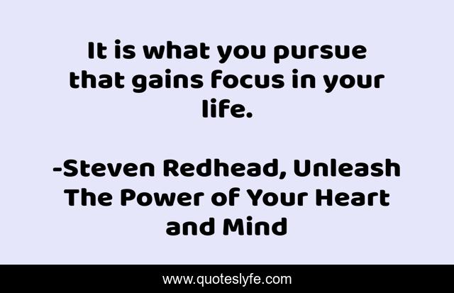 This page presents the quote "It is what you pursue that gains focus in your life.". Author of this quote is Steven Redhead, Unleash The Power of Your Heart and Mind. This quote is about pursue, life, focus,.