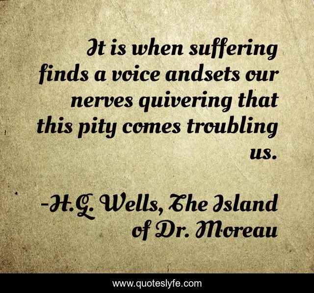 This page presents the quote "It is when suffering finds a voice andsets our nerves quivering that this pity comes troubling us.". Author of this quote is H.G. Wells, The Island of Dr. Moreau. This quote is about pity, suffering, pain,.