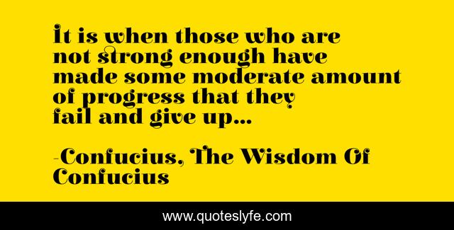 This page presents the quote "It is when those who are not strong enough have made some moderate amount of progress that they fail and give up...". Author of this quote is Confucius, The Wisdom Of Confucius. This quote is about enthusiasm, philosophy, inspirational, wisdom,.