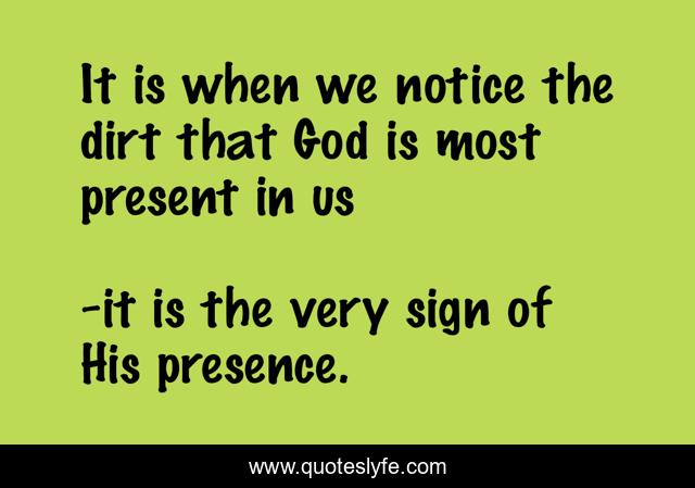 This page presents the quote "It is when we notice the dirt that God is most present in us". Author of this quote is it is the very sign of His presence.. .
