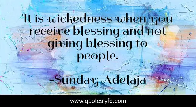 This page presents the quote "It is wickedness when you receive blessing and not giving blessing to people.". Author of this quote is Sunday Adelaja. This quote is about blessings, wickedness, people,.