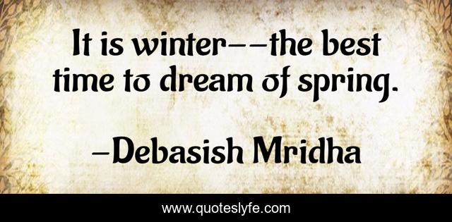 This page presents the quote "It is winter--the best time to dream of spring.". Author of this quote is Debasish Mridha. This quote is about debasish, winter, mridha, philosophy, debasish-mridha, inspirational, enthusiasm, the-best-time-to-dream-of-spring,.