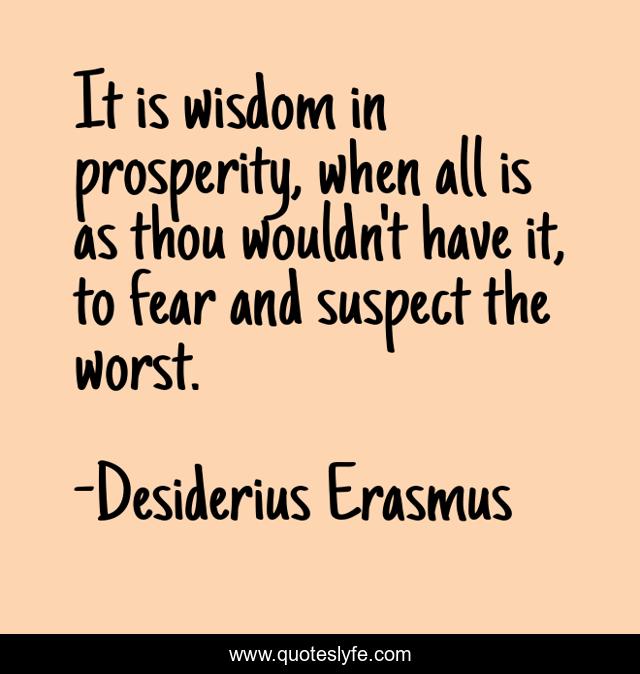 This page presents the quote "It is wisdom in prosperity, when all is as thou wouldn't have it, to fear and suspect the worst.". Author of this quote is Desiderius Erasmus. This quote is about prosperity, worst, wisdom,.