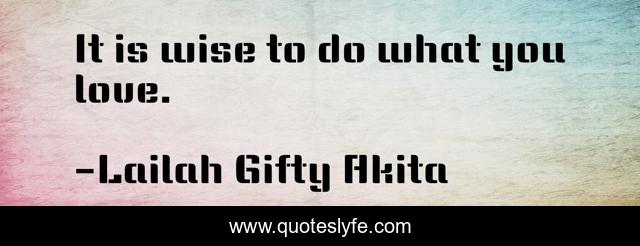 This page presents the quote "It is wise to do what you love.". Author of this quote is Lailah Gifty Akita. This quote is about enthusiasm, work, passion, inspirational,.