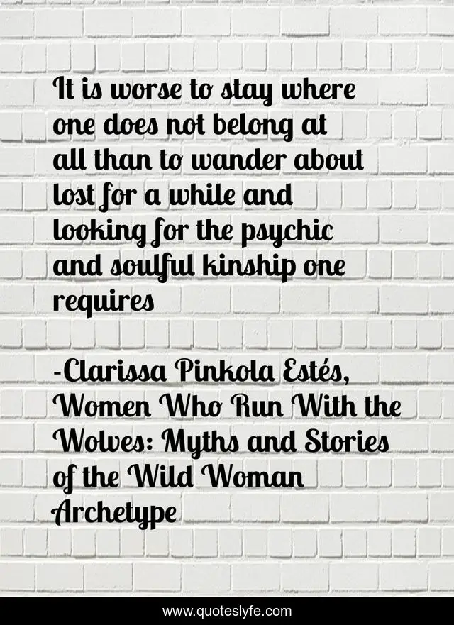 "Clarissa Pinkola Estés, Women Who Run With the Wolves: Myths and Stories of the Wild Woman Archetype Quotes." Quoteslyfe.com, 2025. Mon. 08 Dec. 2025. <https://www.quoteslyfe.com/quote/It-is-worse-to-stay-where-one-4244>.