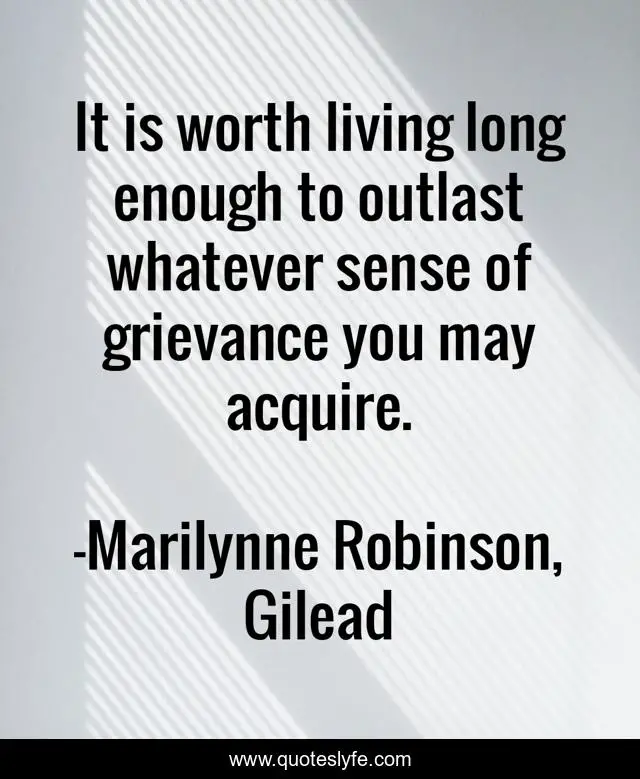 This page presents the quote "It is worth living long enough to outlast whatever sense of grievance you may acquire.". Author of this quote is Marilynne Robinson, Gilead. This quote is about living, kind, brave, love, beauty, fortitude, life, stewardship, courage,.